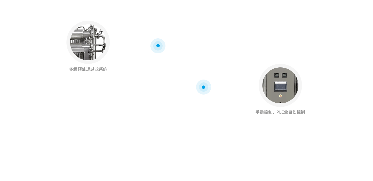 所有與原料水,純蒸汽及注射用水接觸的部分均為316L材質,不銹鋼表面電化學拋光,保證生產注射用水的品質,提高設備使用年限。